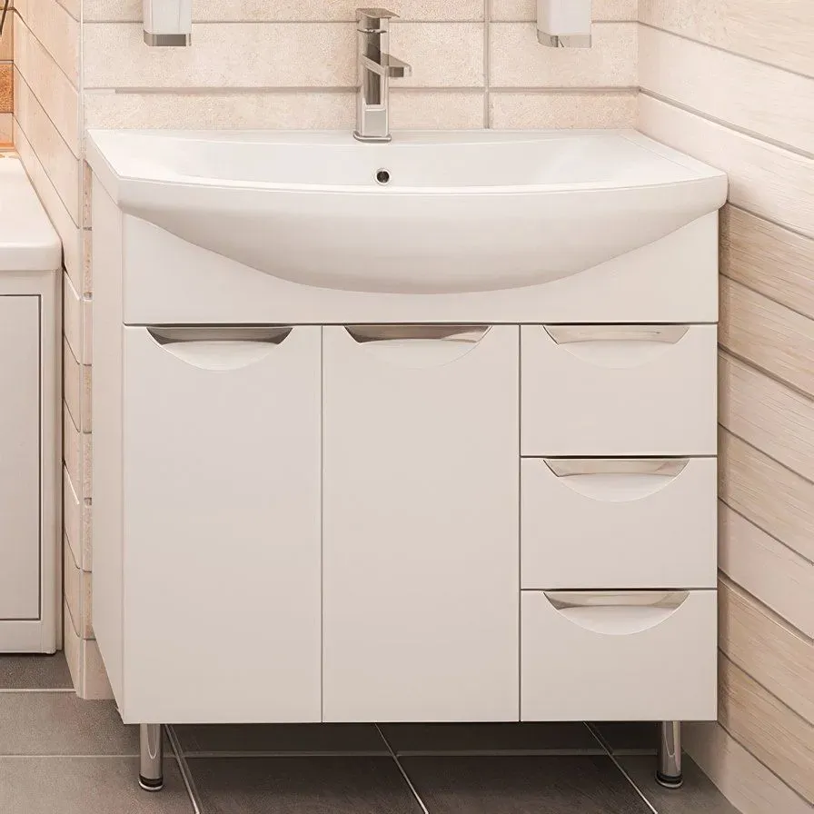 Тумба Emmy Милли 80 с раковиной Балтика 80 напольная, 3 ящика, 2 двери, белая купить