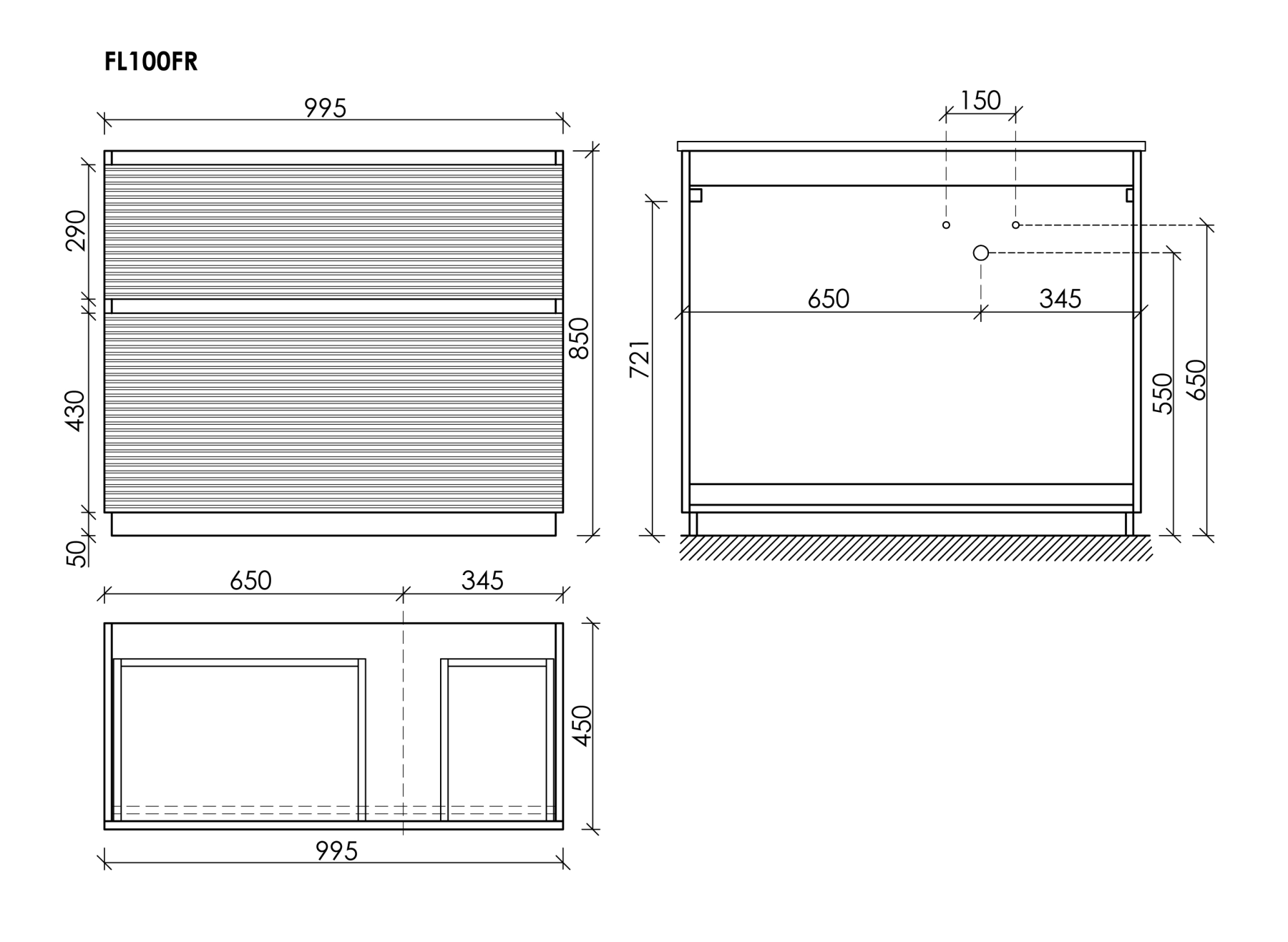 • Размер 995х445х850, правая
