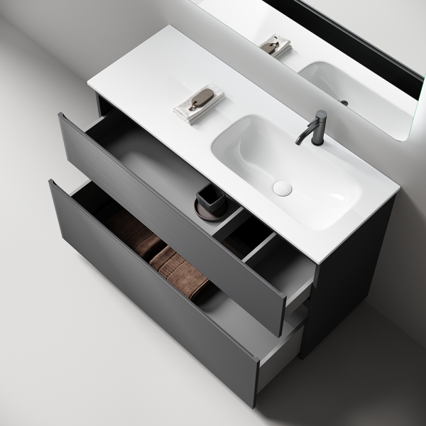 • Тумба напольная с двумя выдвижными ящиками с доводчиками скрытого монтажа