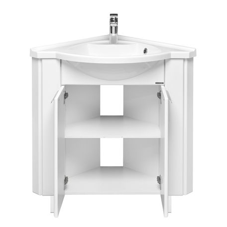 Угловая модель для небольших ванных комнат. Тумба на регулируемых по высоте ножках комплектуется удобной раковиной из литого мрамора.Тумба для комплекта Акватон Альтаир 62 угловая белая несравненно подойдет как для просторной ванной комнаты, так и для небольшого помещения. Напольный способ установки производится непосредственно на пол, при этом конструкция максимально устойчива при серьезных физических нагрузках.В производстве используют только качественные влагостойкие материалы (ДСП), в составе которых полностью отсутствуют опасные вещества. Серия Альтаир отличается превосходным дизайном с соблюдением всех важных элементов современного стиля. Основным цветом, в котором выполнена тумба под раковину Акватон Альтаир является белый, гармонирующий с большинством интерьерных решений. Тумба под раковину предусматривает удобную и вместительную систему хранения, состоящую из дверей. Важные размеры товара: ширина 59.8 см, глубина 59.8 см, высота 82 см.Страной бренда Акватон является Россия, все товары производятся с выполнением соответствующих стандартов качества, что позволяет быть полностью уверенными в долговечности и надежности. Тумба для комплекта Акватон Альтаир 62 угловая белая это абсолютный комфорт в современной ванной комнате.