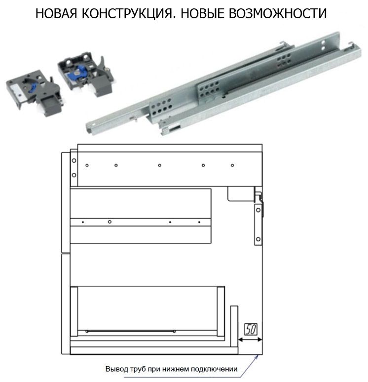 - Новые направляющие нижнего крепежа обеспечивают более жесткое и надежное крепление ящиков