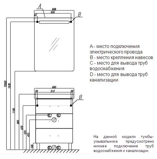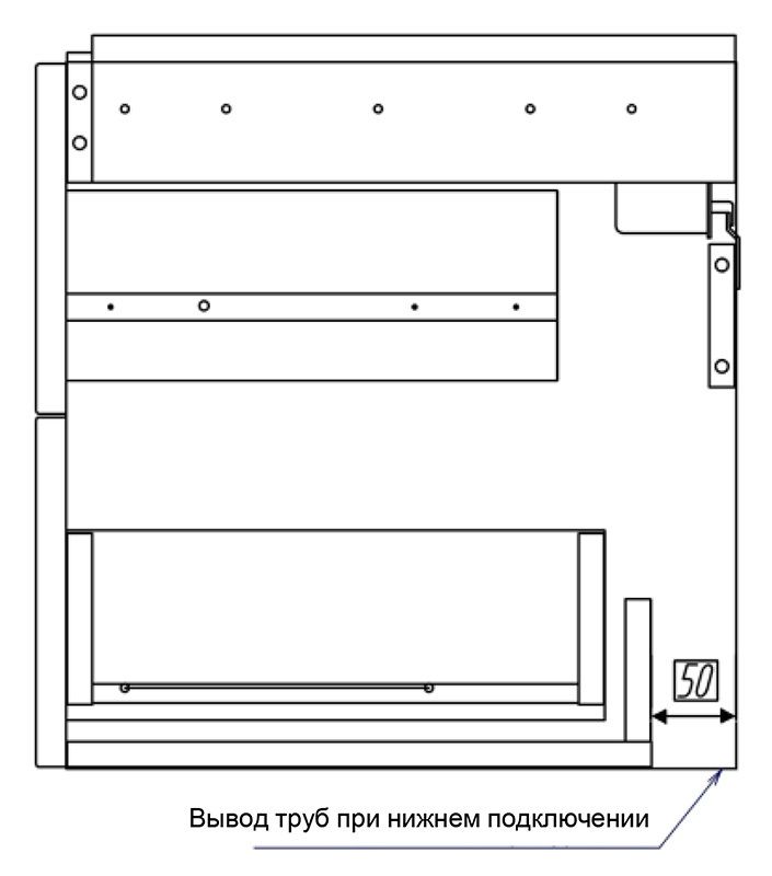 • Дополнительно организовано нижнее подключение труб водоснабжения и канализации