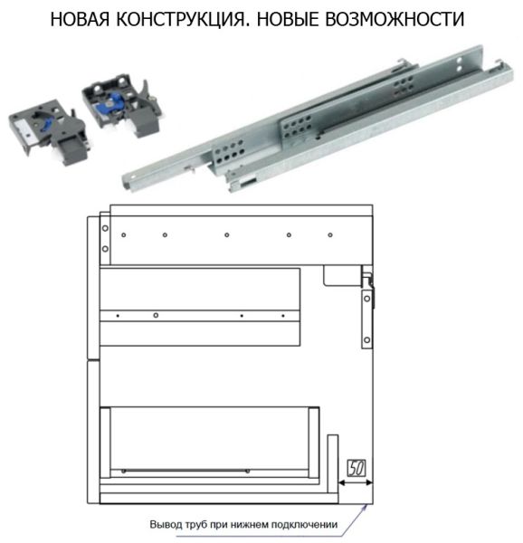 • Новые направляющие нижнего крепежа обеспечивают более жесткое и надежное крепление ящиков