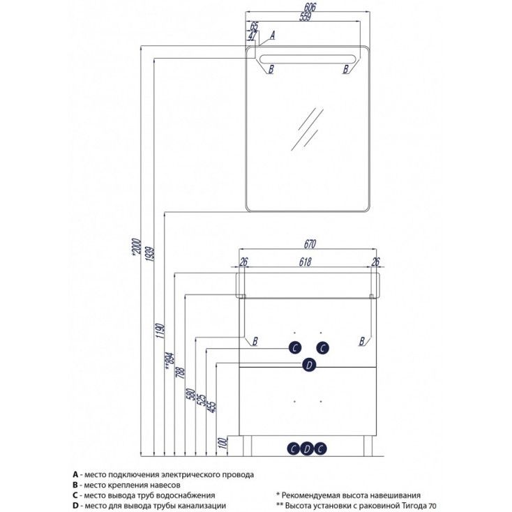• Дополнительно организовано нижнее подключение труб водоснабжения и канализации