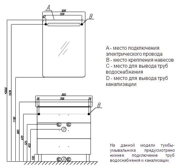 • Дополнительно организовано нижнее подключение труб водоснабжения и канализации