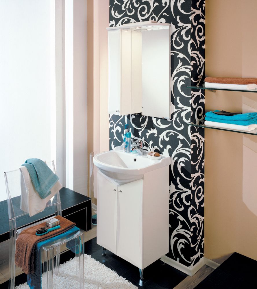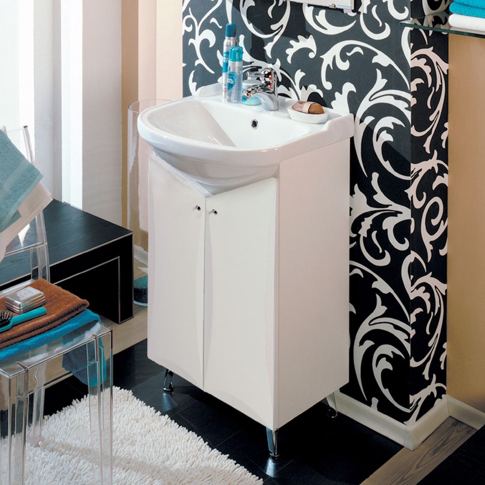 Эта коллекция для небольших ванных комнат выполнена в строгом традиционном стиле и белом цвете. В тумбе за распашными фасадами установлена регулируемая по высоте полка. Тумба этой коллекции комплектуется регулируемыми по высоте ножками.