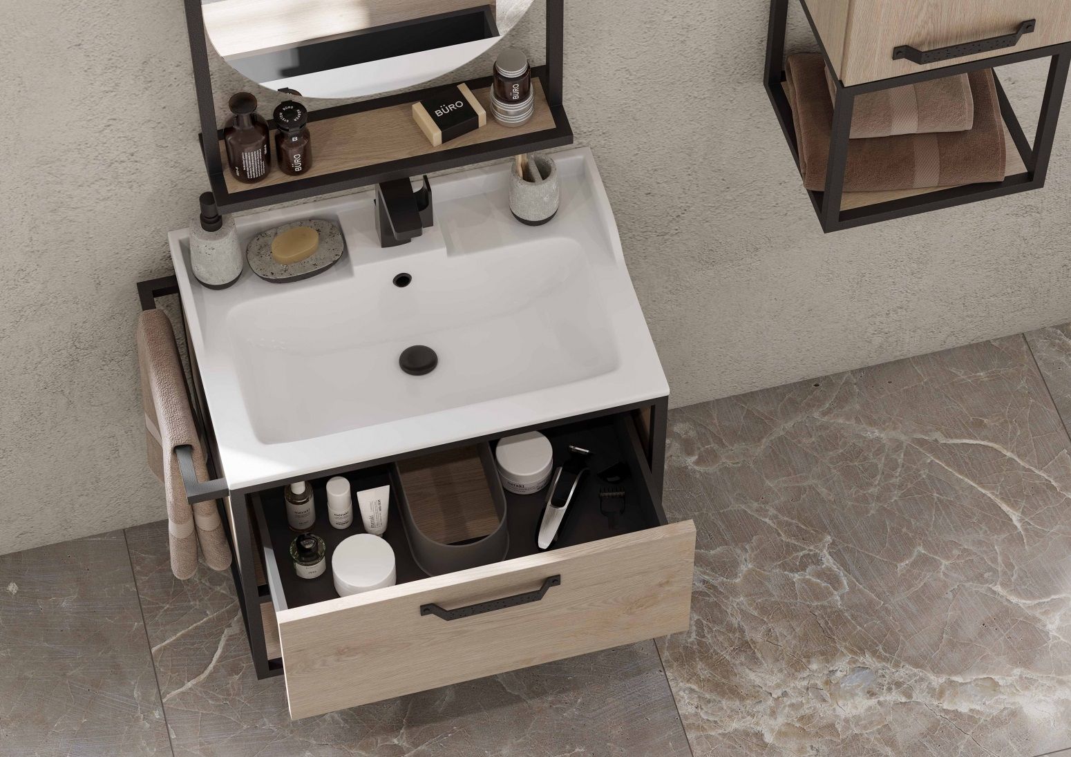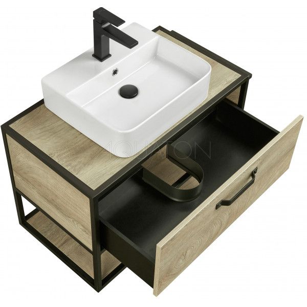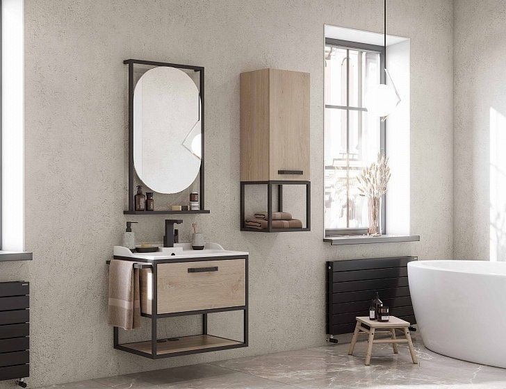 • Тумба Лофт Фабрик 65 в цвете дуб эндгрейн – это сочетание натурального древесного декора и благородства металла