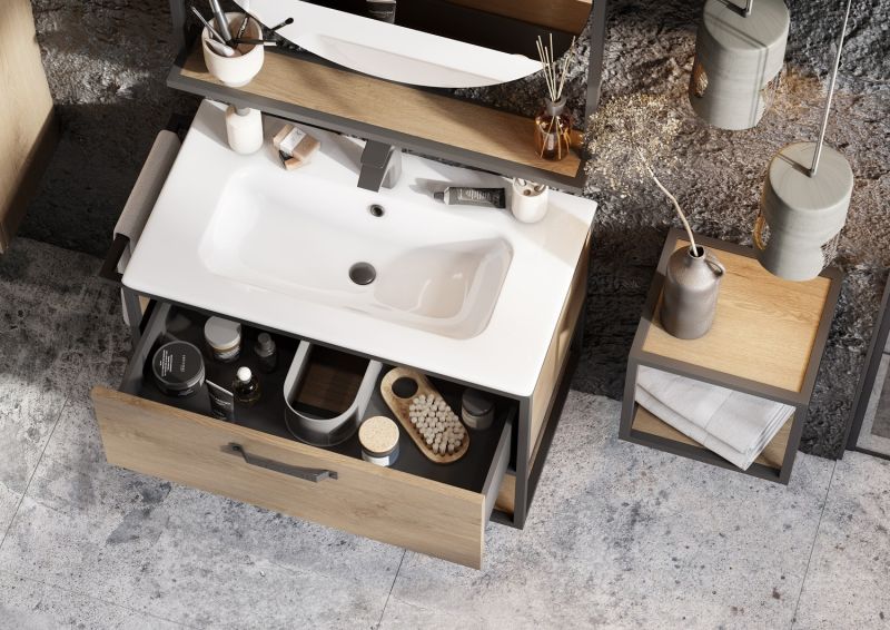 • Удобный вместительный ящик, снабженный направляющими плавного выдвижения и открытая нижняя полка позволят разместить все необходимое