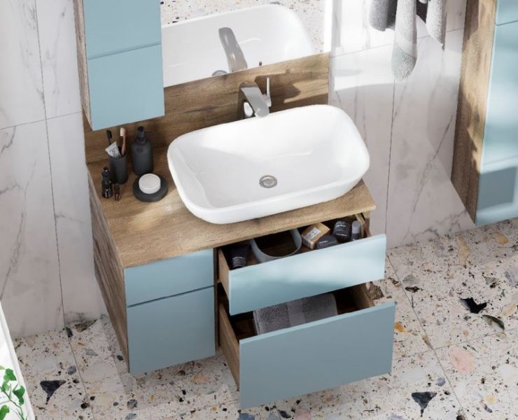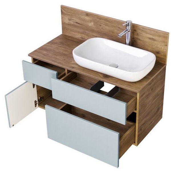 Тумба с раковиной Акватон Мишель 100 дуб рустикальный/фьорд бесподобно подойдет как для просторной ванной комнаты, так и для небольшого помещения. Подвесной способ установки дает возможность не только визуально увеличить пространство, но и обеспечивает быстрый и удобный доступ для уборки.В производстве используют только качественные влагостойкие материалы (ДСП), в составе которых полностью отсутствуют опасные вещества. Коллекция Мишель выполнена в эксклюзивном дизайнерском решении в лучших традициях современного стиля. Голубой, основной цвет исполнения Акватон Мишель, гармонирующий с большинством интерьерных решений. Тумба с раковиной предусматривает удобную и вместительную систему хранения, состоящую из ящиков с системой нажимного открывания. Качественные доводчики позволяют обеспечить мягкое и тихое закрывание. Важные размеры товара: ширина 100 см, глубина 46 см, высота 52 см. Раковина, материал исполнения которой полимерная керамика, имеет оптимальную глубину предотвращающую расплескивание воды во время умывания.Россия родина бренда Акватон, вся продукция производится со строгим соблюдением всех стандартов, благодаря чему можно быть абсолютно уверенным в надежности и высоком качестве. Тумба с раковиной Акватон Мишель 100 дуб рустикальный/фьорд создаст уют и комфорт в любом дизайнерском решении, и ванная комната обретет неповторимый элемент интерьера.