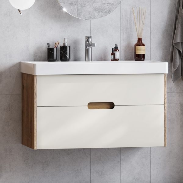 Тумба под раковину Акватон Оливия 90см бежевый/дуб веллингтон 1A254401OLVG0 купить