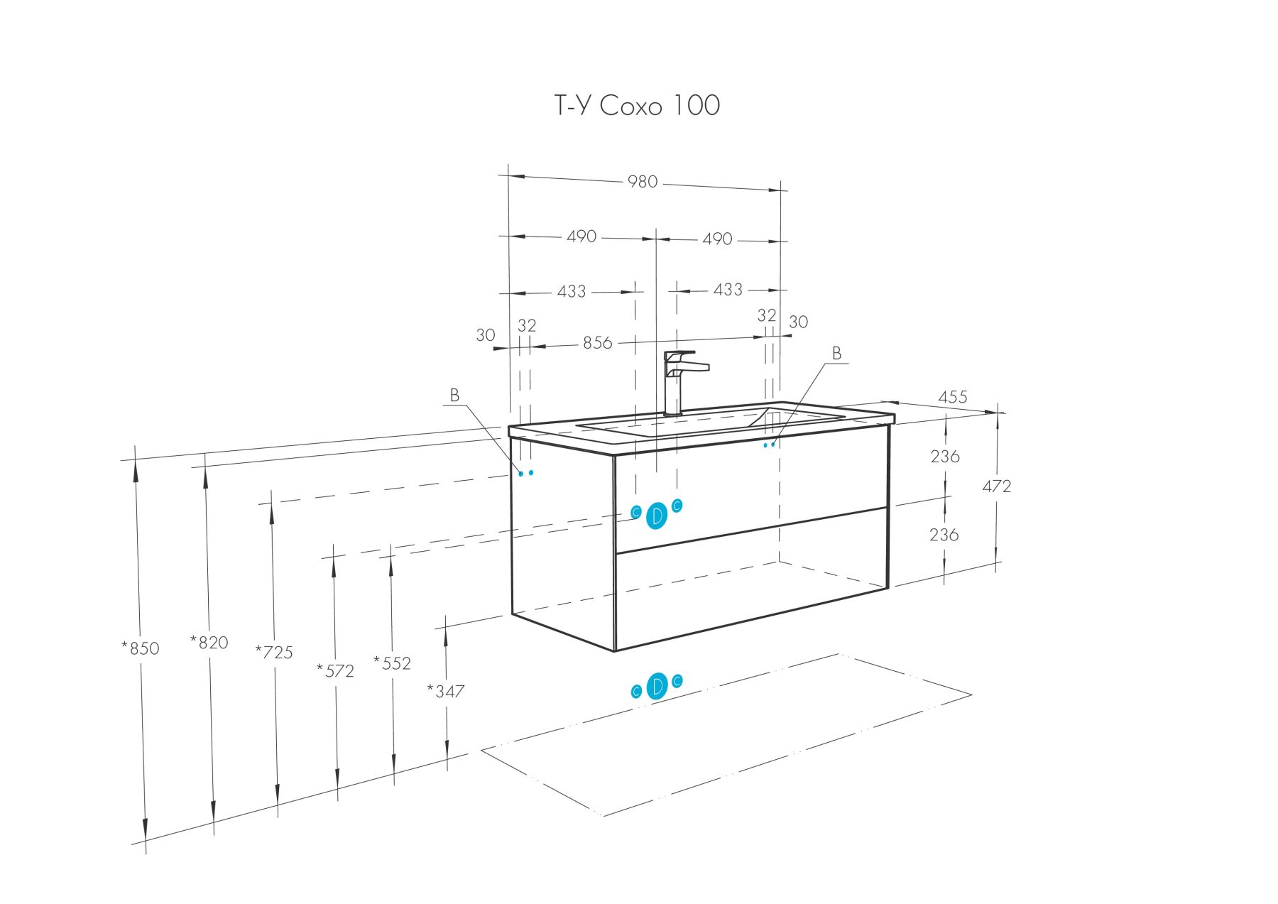 Тумба под раковину Акватон Сохо 100см слэйт/галька серая 1A258201AJ9A0 купить