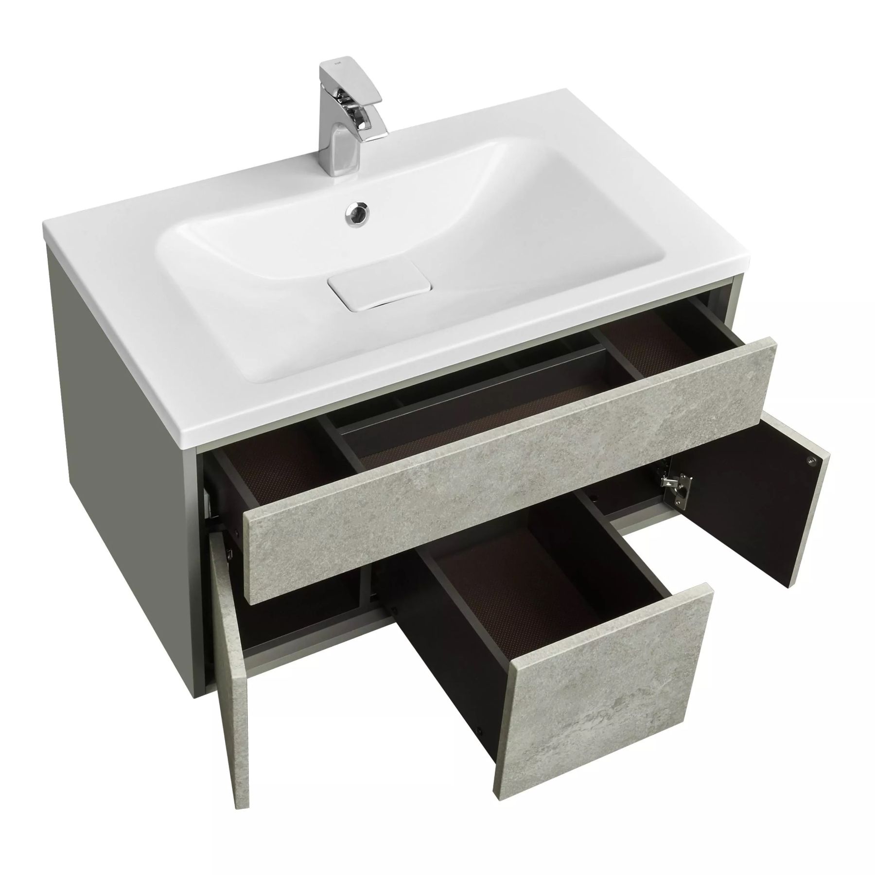 Подвесная тумба Уэльс 100 от AQUATON в стиле лофт создана для истинных ценителей индустриального шика. Глубокий благородный цвет фасадов авеллино грей в сочетании с внутренней отделкой в оттенке тёмный шоколад придаёт модели актуальное звучание, отражая эстетику современной роскоши. Корпус из влагостойкой ЛДСП и фасады из МДФ покрыты матовой пленкой. Отсутствие лицевой фурнитуры подчеркивает сдержанный лаконичный дизайн модели. Тумба предлагает оптимальную систему организации пространства и оборудована двумя вместительными ящиками, верхним и центральным, которые выдвигаются простым нажатием благодаря удобной системе push-to-open. Внизу справа и слева за фасадами-створками скрыты дополнительные отсеки для хранения - таким образом, всё необходимое всегда будет под рукой.