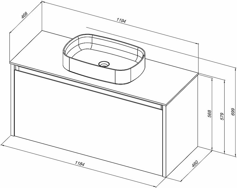 Габариты корпуса тумбы (ШхВхГ): 1184х568х460 мм.