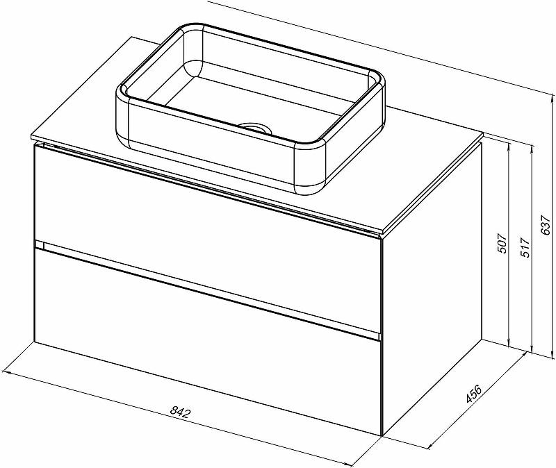 Габариты корпуса тумбы (ШхВхГ): 842х507х456 мм.