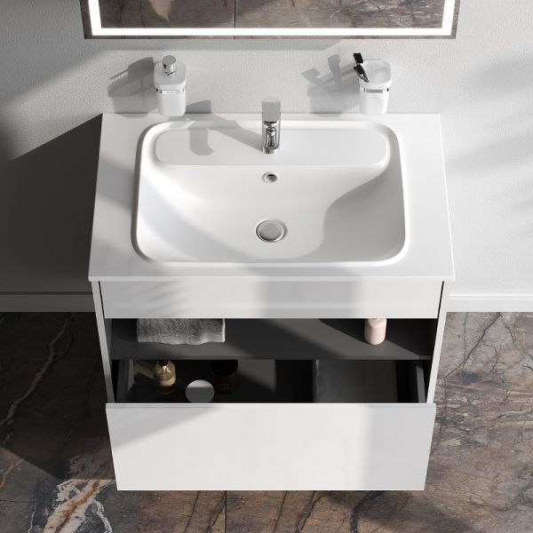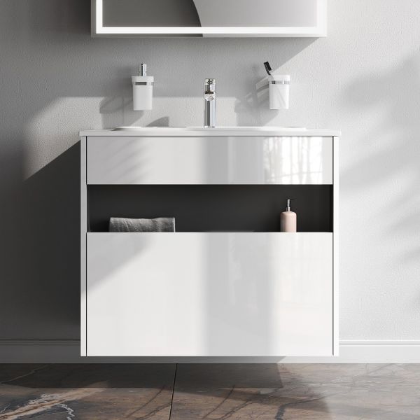 Коллекция мебели Func отличается своей функциональностью, вариативностью и мобильностью. Наши инженеры продумали и учли каждую деталь, чтобы сделать взаимодействие с продуктами максимально простым и комфортным для всех членов семьи. Удобный выдвижной ящик и вместительная открытая ниша позволяют хранить все необходимые средства под рукой. Невероятно мягкое открытие и закрытие благодаря направляющим скрытого монтажа с системой soft close. Универсальный монтаж подвесной и напольный (комплект ножек приобретается отдельно).