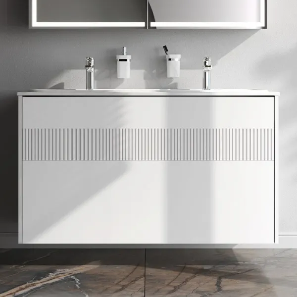 Дополните покупку тумбы уникальной широкой раковиной, интегрированной со столешницей. Раковина позволяет устанавливать два смесителя. Дизайн разработан немецкой студией Design3. Раковина выполнена из литьевого мрамора. Матовая поверхность раковины придает интерьеру ощущение уюта и комфорта. Размер раковины (Ш/Г/В): 1208x492x160 мм. Цвет раковины - белый.