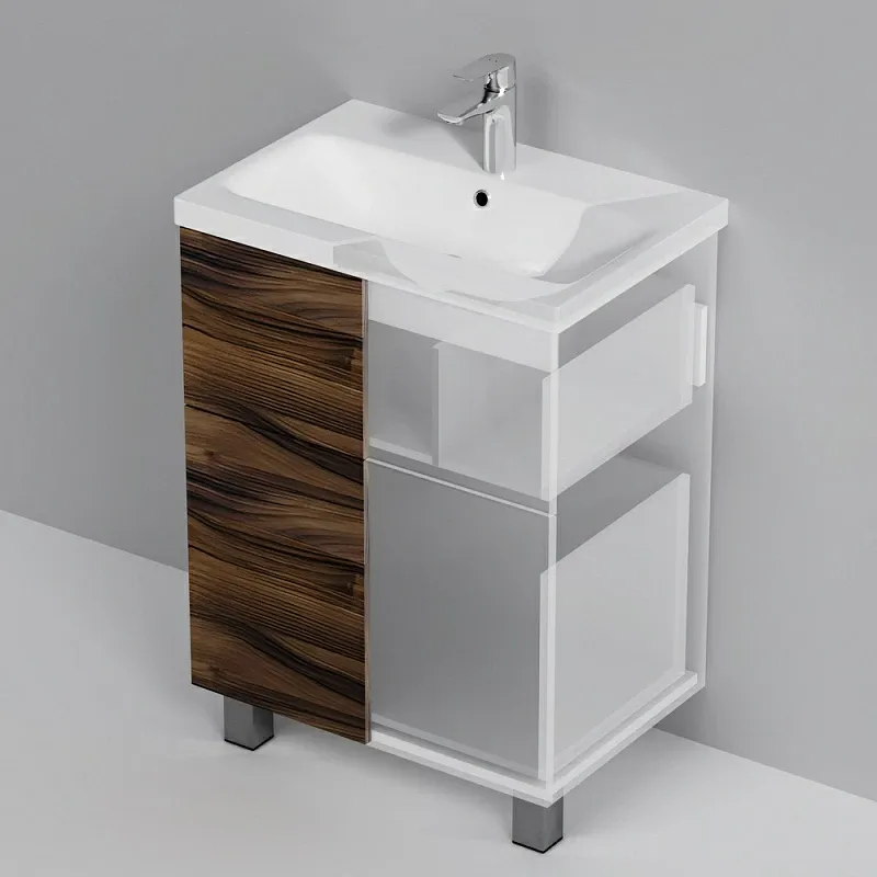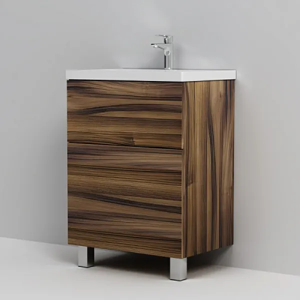 Тумба под раковину Am.Pm Gem M90FSX0602HF напольная на ножках орех 60 смНапольная тумба бренда AM.PM коллекции Gem изготовлена из влагостойкого ЛДСП. Внутреннее пространство двух вместительных ящиков представлено в цвете "антрацит" с антискользящим эффектом. В верхнем ящике находится удобный органайзер для хранения гигиенических принадлежностей. Благодаря системе отделений органайзера, каждый предмет имеет свое место, что обеспечивает порядок и удобство при использовании. Такая система хранения позволяет экономить место и помогает поддерживать чистоту ванной комнаты. Фурнитура push-to-open - открытие ящика легким нажатием на фасад. Направляющие скрытого монтажа обеспечивают плавное выдвижение ящиков. Материал тумбы - влагостойкая ЛДСП. Покрытие фасада и корпуса - ламинат. Размер (Ш/Г/В): 600x408x810 мм. Цвет тумбы – орех.