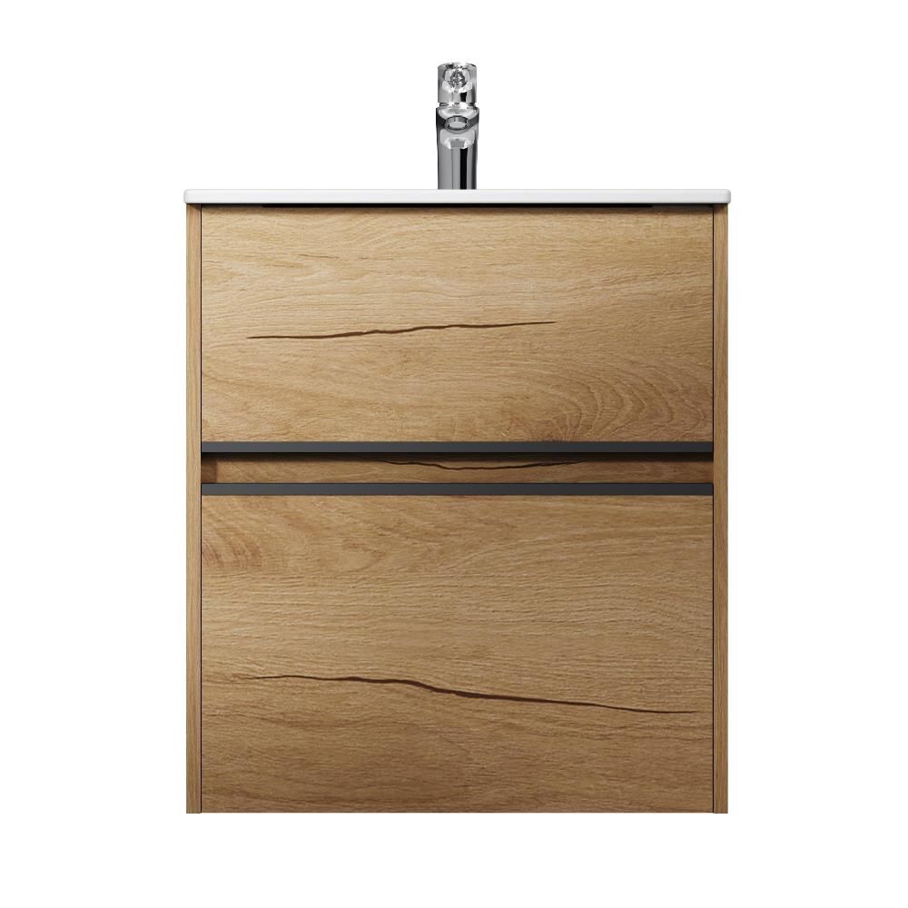 Два вместительных ящика на направляющих Soft-close скрытого монтажа, которые обеспечивают плавное и бесшумное открывание и закрывание - использование тумбы максимально комфортное. Элегантная черная акцентная металлическая профильная ручка придает изделию современный и стильный вид, подчеркивая его уникальность. Самые  популярные цвета: белый глянцевый для создания светлого и воздушного пространства, и под натуральное дерево, который добавит тепла и уюта в ваш интерьер.