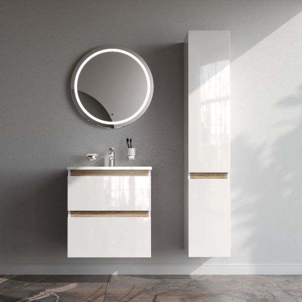 Подвесная тумба бренда AM.PM коллекции X-Joy с белыми глянцевыми фасадами, дополненными отделкой под светлое дерево. Функциональный органайзер в первом ящике позволит хранить необходимые косметические средства под рукой и в полном порядке. Внутреннее покрытие каждого ящика выполнено в современном цвете "антрацит" и имеет противоскользящее покрытие. Материал и покрытие корпуса - влагостойкий ЛДСП. Материал фасада - МДФ. Покрытие фасада - высококачественные итальянские краски и эмали. Размер тумбы (Ш/Г/В): 590x450x620. Цвет тумбы - белый глянец.