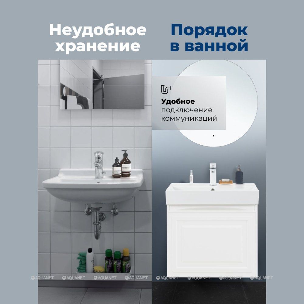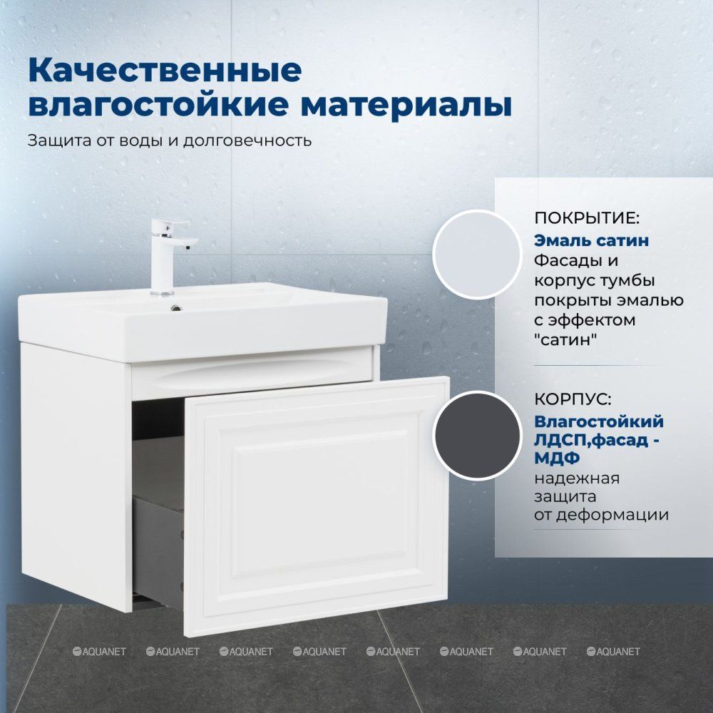 Тумба под раковину Aquanet Агата 60 белый сатин сочетает элегантность неоклассики с практичность... Подробнее