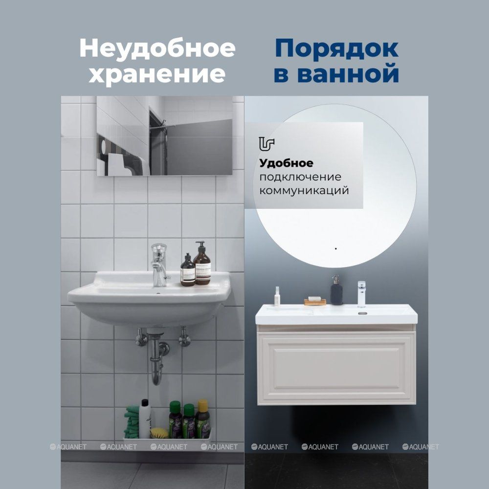 Тумба под раковину Aquanet Агата 100 бежевый - практичное и стильное решение для ванной комнаты.... Подробнее