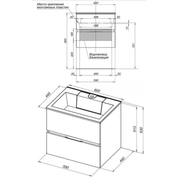Тумба под раковину Aquanet Алвита 183991 60 см серый антрацит купить