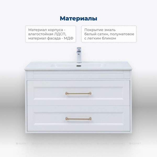 Тумба под раковину Aquanet Бостон new 100 белый сатин Стильная и функциональная тумба под рак... Подробнее