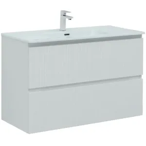 Тумба под раковину Aquanet Джейн (Flat) 100 белый матовый — практичное и стильное решение для ванной комнаты. Корпус и фасады изготовлены из МДФ, покрытого суперматовой пленкой ПВХ повышенной прочности с эффектом «Soft touch». Покрытие не только приятное на ощупь, но и надежно защищает мебель от влаги. Полимерная структура пленки не пропускает воду, поэтому тумба не деформируется со временем и сохраняет первоначальный вид.