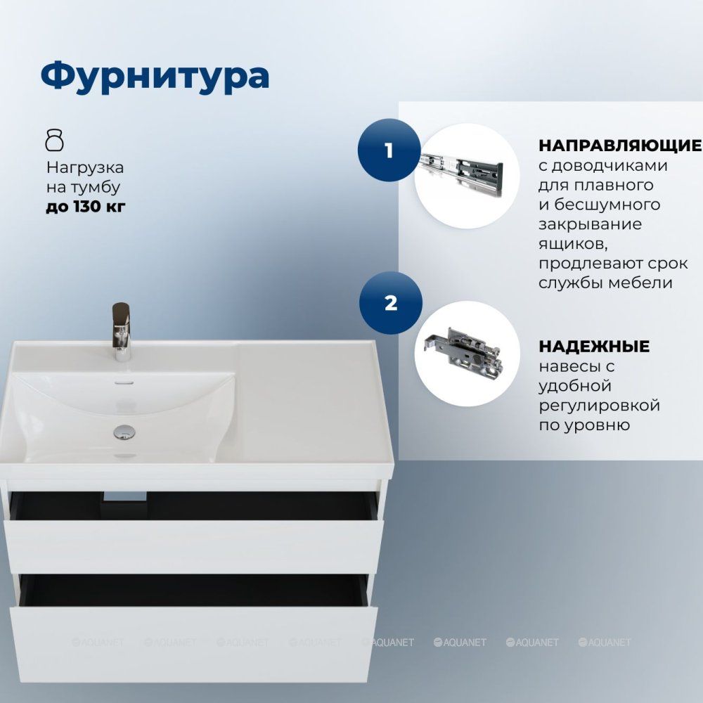 Тумба под раковину Aquanet Nova Lite 2.0 100 в белом цвете с глянцевым покрытием станет практи... Подробнее