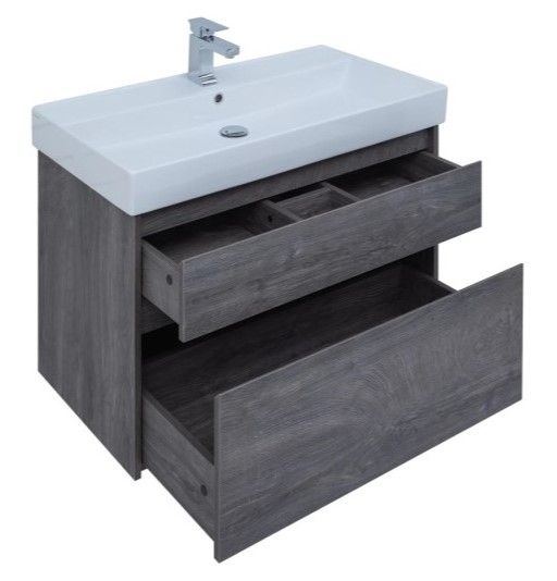 Тумба под раковину Aquanet Nova Lite 90 из влагостойкой ламинированной древесно-стружечной плиты в благородном цвете «дуб рошелье» имеет достойный вид. Фактура натурального дерева выглядит изысканно, а подвесной монтаж придает визуальную легкость тумбе шириной 90 см. Она оборудована двумя выдвижными ящиками. Ящики довольно вместительные и позволяют разместить все необходимое. Фасады выполнены с декоративной интегрированной ручкой, не имеющей острых краев и внутренних углов, что обеспечивает удобство в эксплуатации и легкий уход за мебелью. Направляющие с доводчиками, так что при открывании и закрывании ящикам обеспечен плавный ход и отсутствие неприятных стуков.