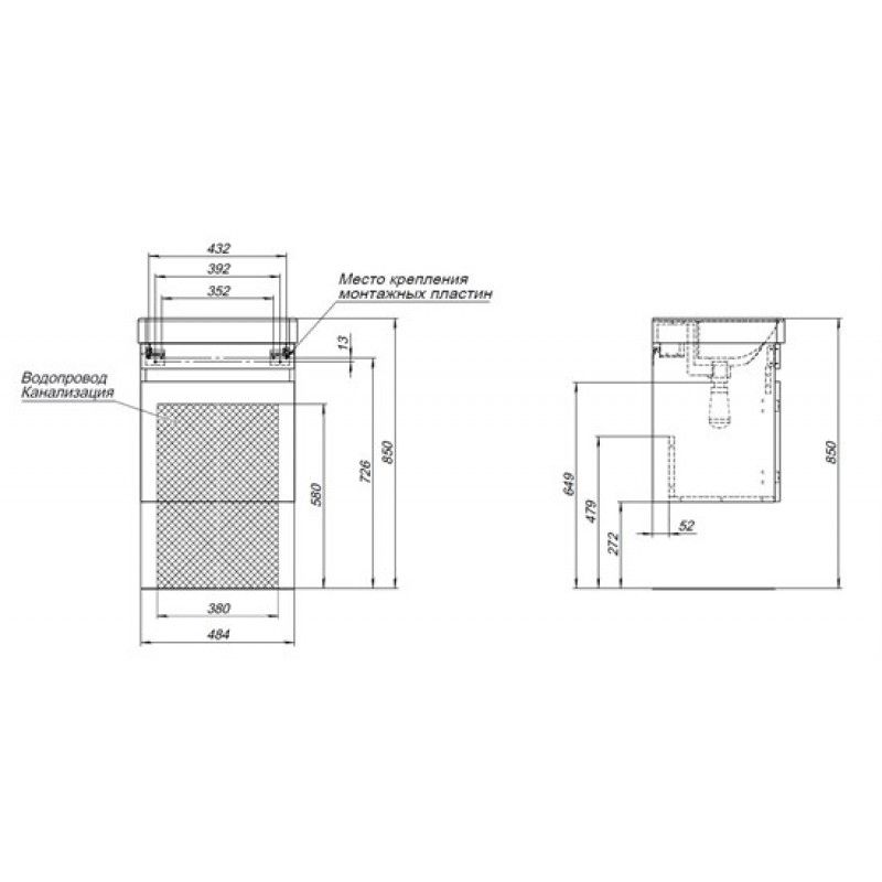 Тумба Aquanet Оптима 50 продумана до мелочей. В ней предусмотрено удобное место для подводки коммуникаций снизу, что облегчает установку и подключение сантехнического оборудования.