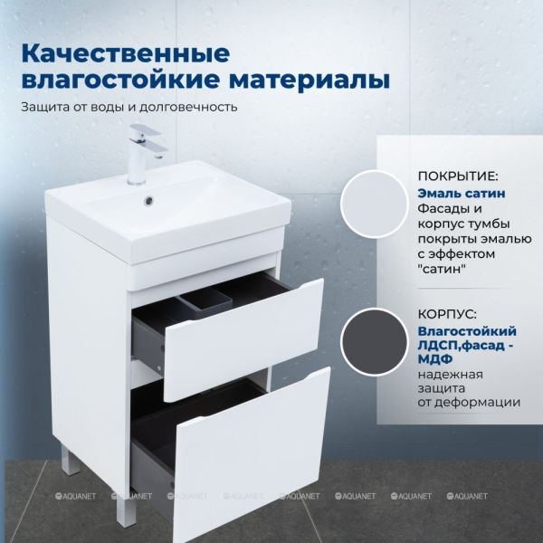Тумба под раковину Aquanet Слим 50 напольная, белый сатин – компактное и функциональное р... Подробнее