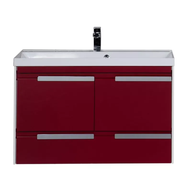Тумба под раковину комплекта мебели для ванной комнаты Акванет Тиволи создана в стиле модерн. Модель выделяется своей лаконичностью и новизной, четкой геометричностью линий. Внешняя фурнитура выполнена в виде массивных горизонтальных перекладин, являющихся основной зрительной доминантой. Фурнитура имеет качественную хромированную отделку, которую эффектно подчеркивает бордовое глянцевое покрытие. Тумба обеспечит удобное место хранения полотенец в просторных выдвижных ящиках. Глубокая раковина из литьевого мрамора функциональна и объёмна. Ее тонкий бортик подчеркивает горизонтальный рисунок хромированных ручек.