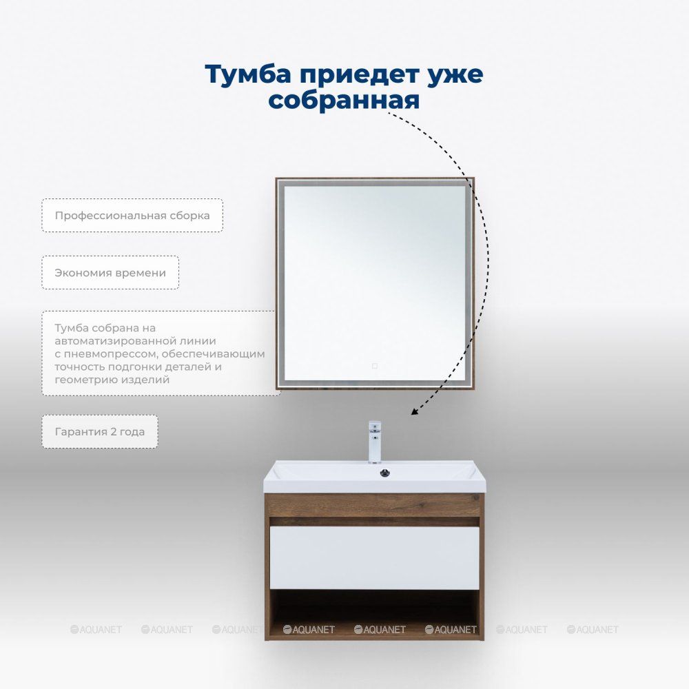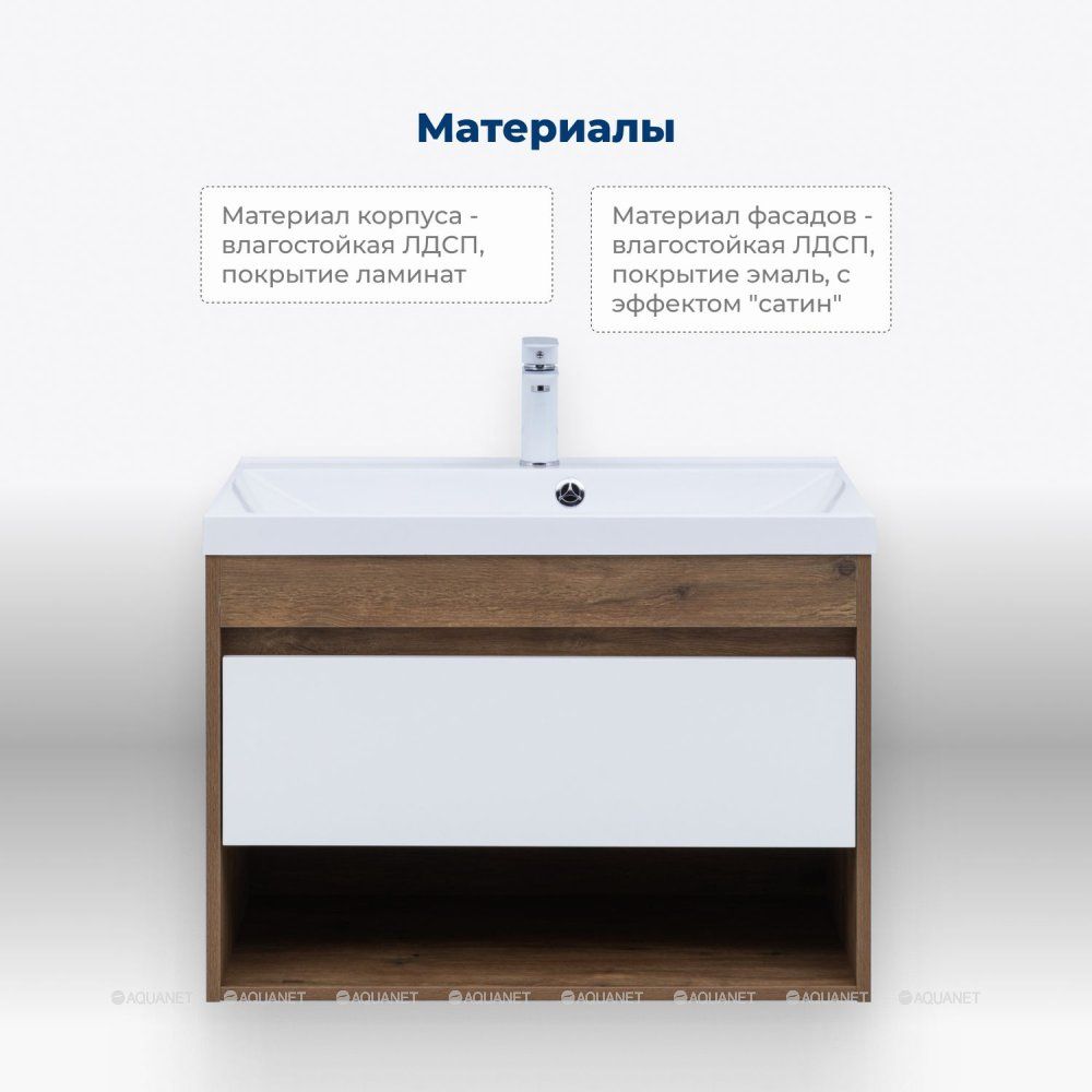 Тумба под раковину Aquanet Тренд 75 дуб рустикальный/белый сатин : Изысканное сочетание фун... Подробнее