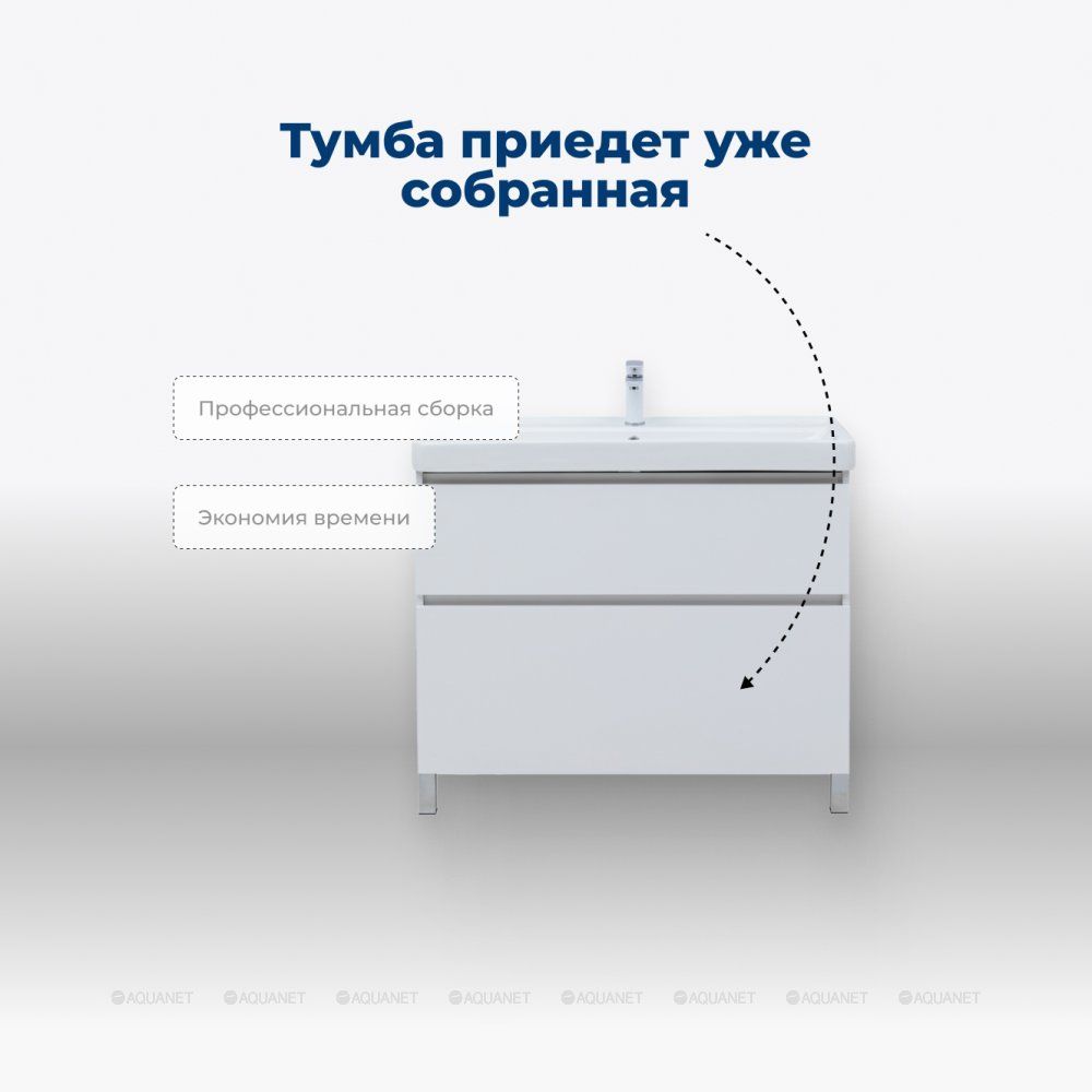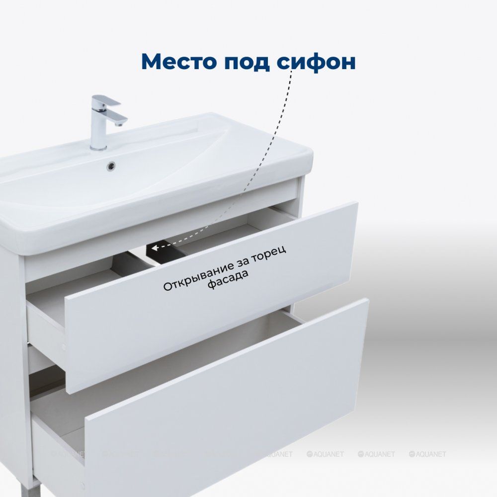 Тумба под раковину Aquanet Вега 90 напольная в отделке "белый глянец" – это воплощение эле... Подробнее
