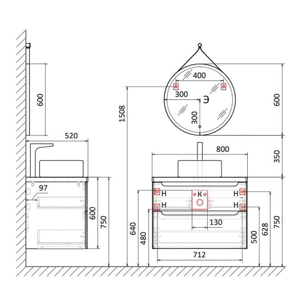 Тумба под раковину Aquanika WOOD AQW795156WRU87 подвесная 80 см. белая
