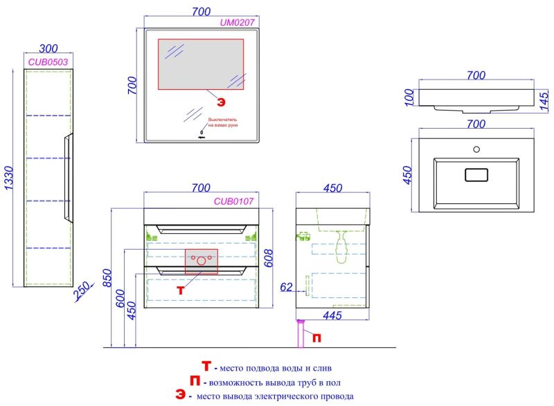 Тумба под раковину Aqwella Cube 70см серый CUB0107GR