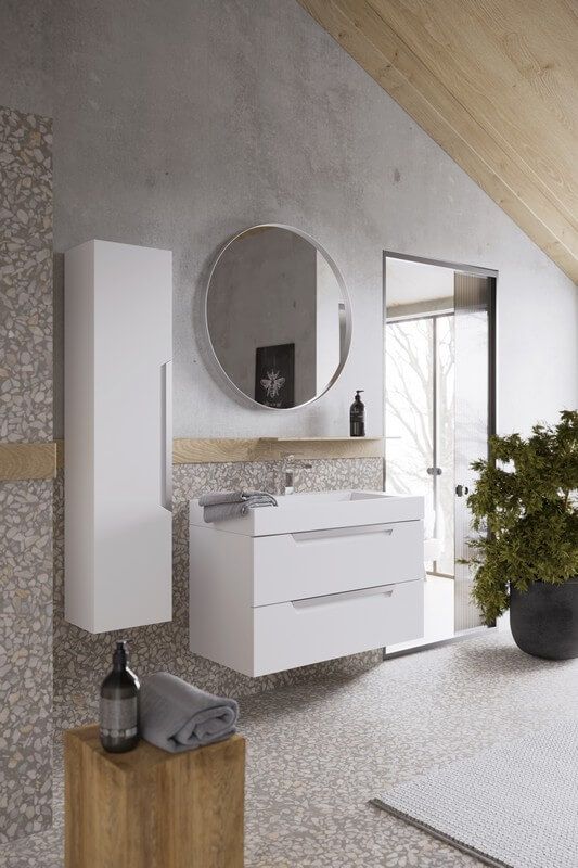 Подвесная тумба в белом матовом цвете с двумя ящиками под умывальник из литьевого мрамора.Коллекция мебели Cube – это строгие линии мебели для современных интерьеров, подчёркнутые искусным исполнением. Подвесные гарнитуры Cube поставляются в размерах 70 и 90 см. Доступные цвета мебели – белый и серый. Финальный слой лака – матовый.