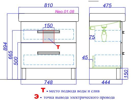 Тумба под раковину Aqwella Нео Q80 Neo.01.08