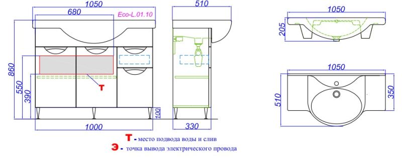 Тумба под раковину Aqwella ЭкоЛайн 100 Eco-L.01.10 (нов ECOL0110)