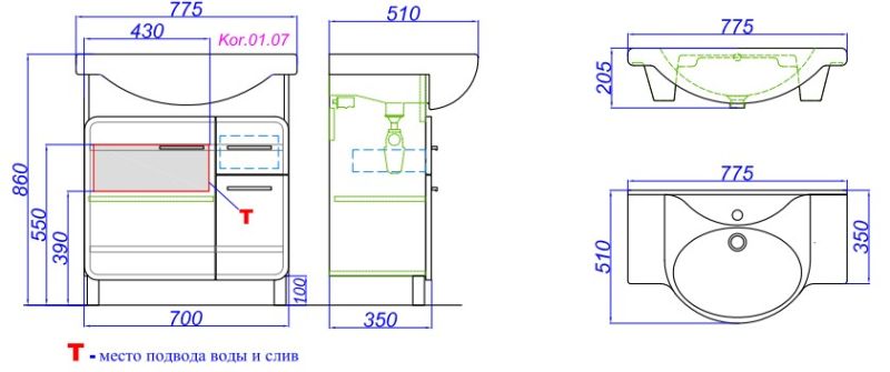 Ширина 70смВысота 80смГлубина 35смAqwella - это мебель для ванной премиум-класса.