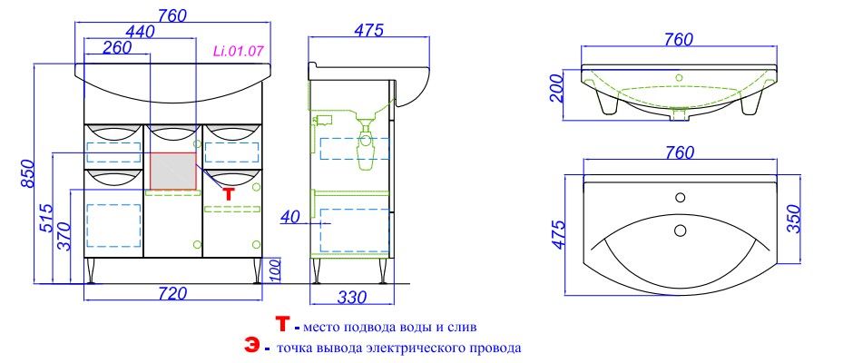 Тумба под раковину Aqwella Лайн Лагуна 750 Li.01.07