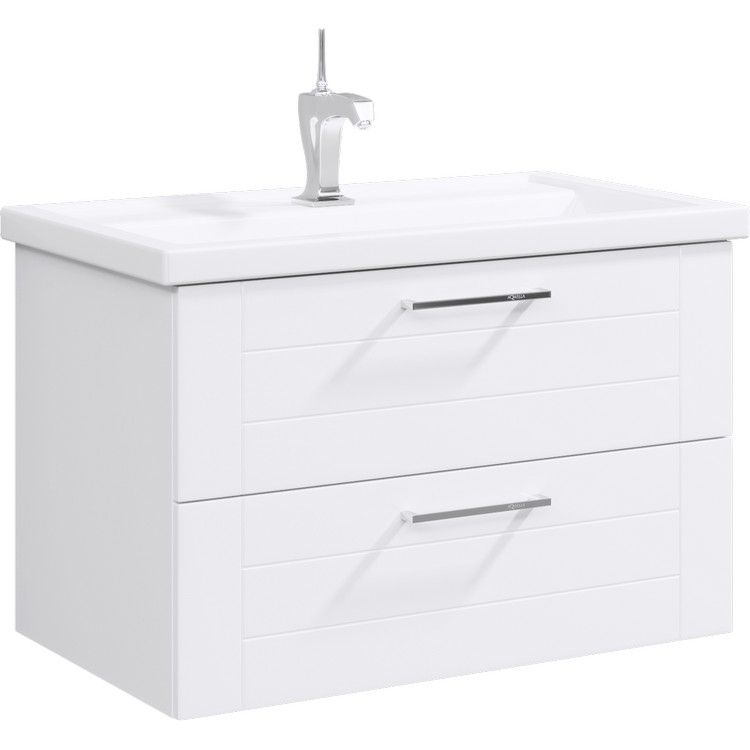 Тумба под раковину Aqwella Manchester MAN01103 100 смПодвесная тумба в белом глянцевом цвете с двумя ящиками с умывальником