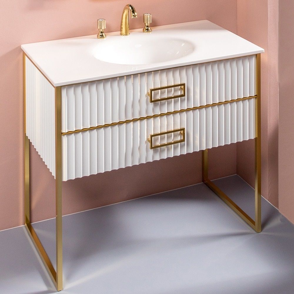 Тумба под раковину Armadi Art Monaco 100см белый/золото 866-100-WG