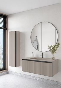 Главной особенностью коллекции являются обрамления фасадов из алюминия в самых трендовых цветах: графит, матовое золото, матовый черный и серебро. Эти обрамления идеально дополняют сантехнику в ванной комнате.