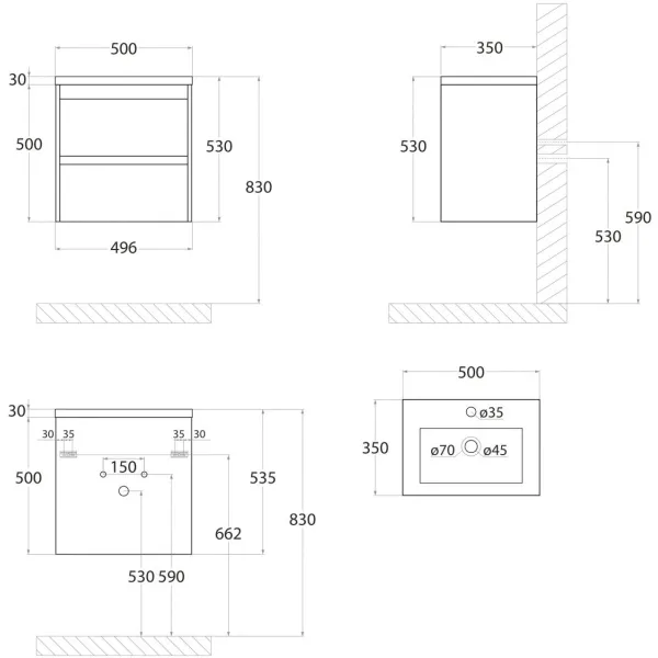 FAMILY-M База под раковину подвесная с двумя выкатными ящиками, Iron Stone, 500x350x550, Family-... Подробнее