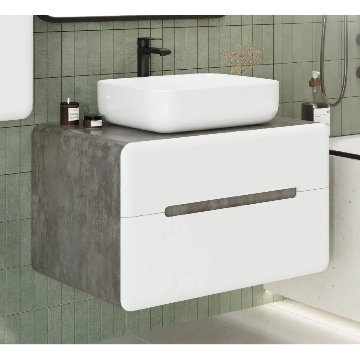 GENOVA База подвесная, с двумя выкатными ящиками, Бетон бромо AM-Genova-800-2C-SO-BC