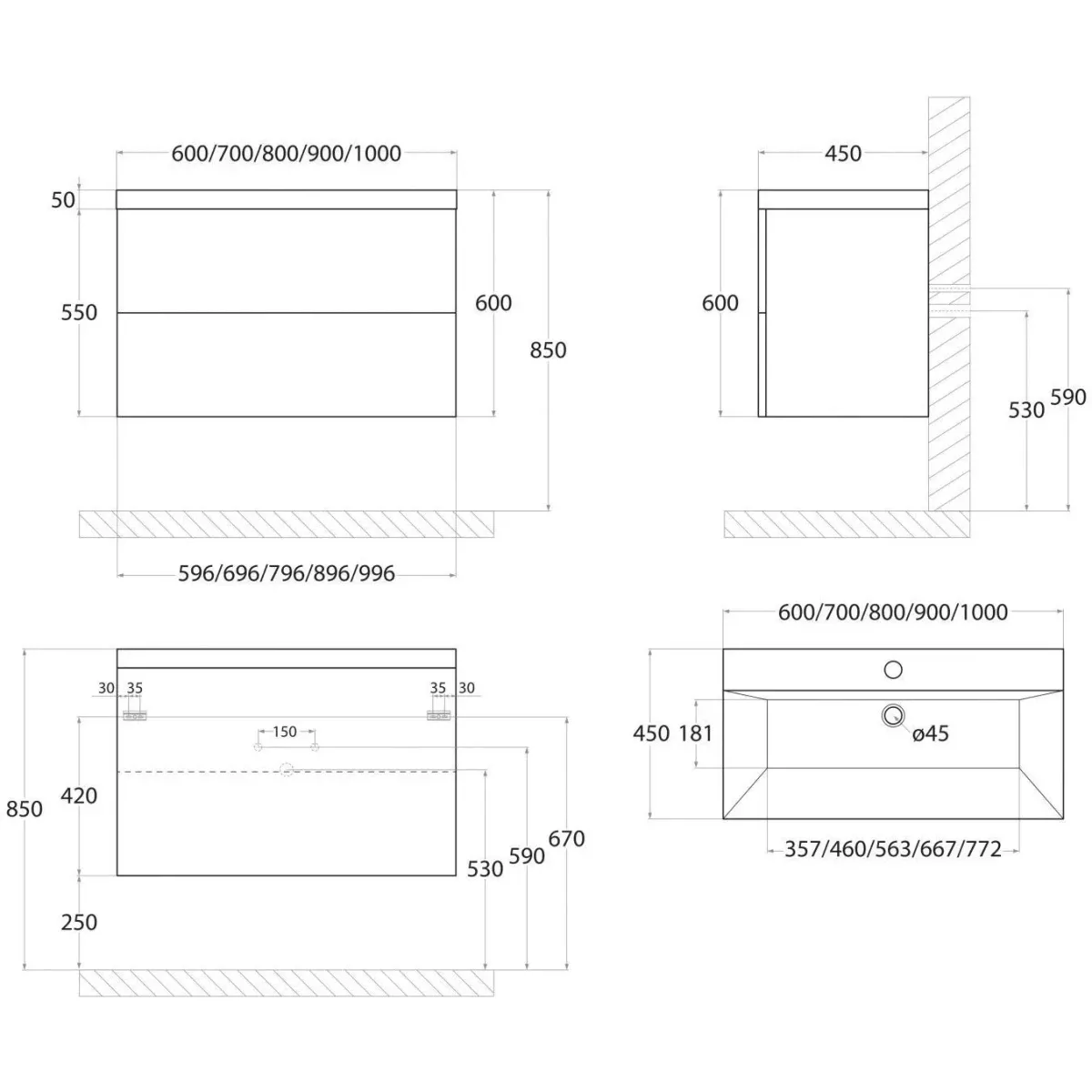 База под раковину подвесная с двумя выкатными ящиками, 800x450x550, AM-Verona-Push-800-2C-SO-KV
