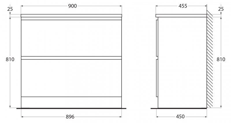Дополнительная информация: база оснащена доводчиками скрытого монтажа с системой Soft close (плавного закрывания) - ;C врезными (фрезерованными) ручками в плоскости фасада; раковина сифоном не комплектуется