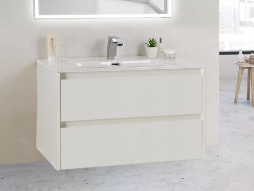 Дополнительная информация: база оснащена доводчиками скрытого монтажа с системой Soft close (плавного закрывания) - ;С фрезерованными ручками по всей длине фасада; раковина сифоном не комплектуется